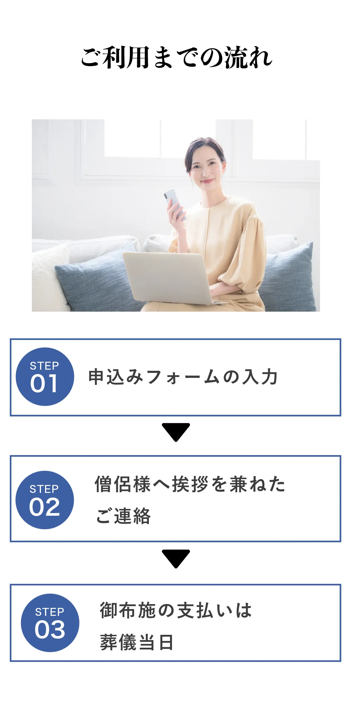 ※ご対象者様がご逝去された場合、事前にご紹介致しました僧侶様とのお葬式の日程調整をお願いします。